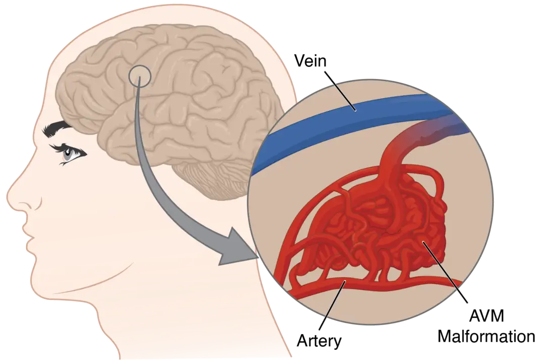 A brain arteriovenous malformation (AVM) is an abnormal entanglement of a blood vessels with both arteries and a veins inside...